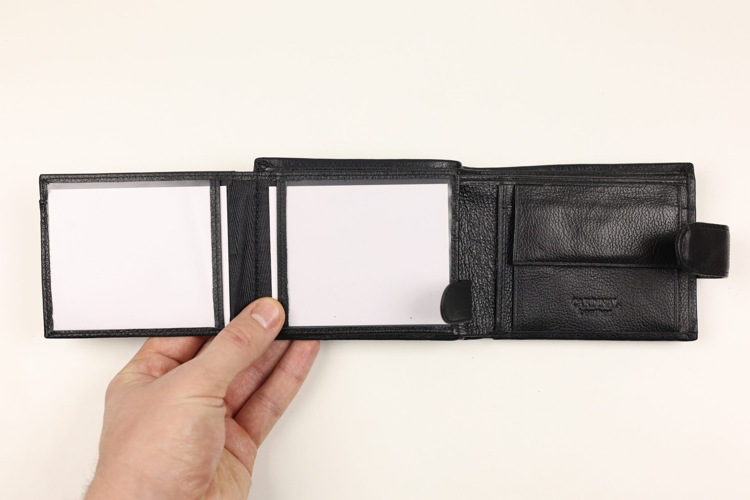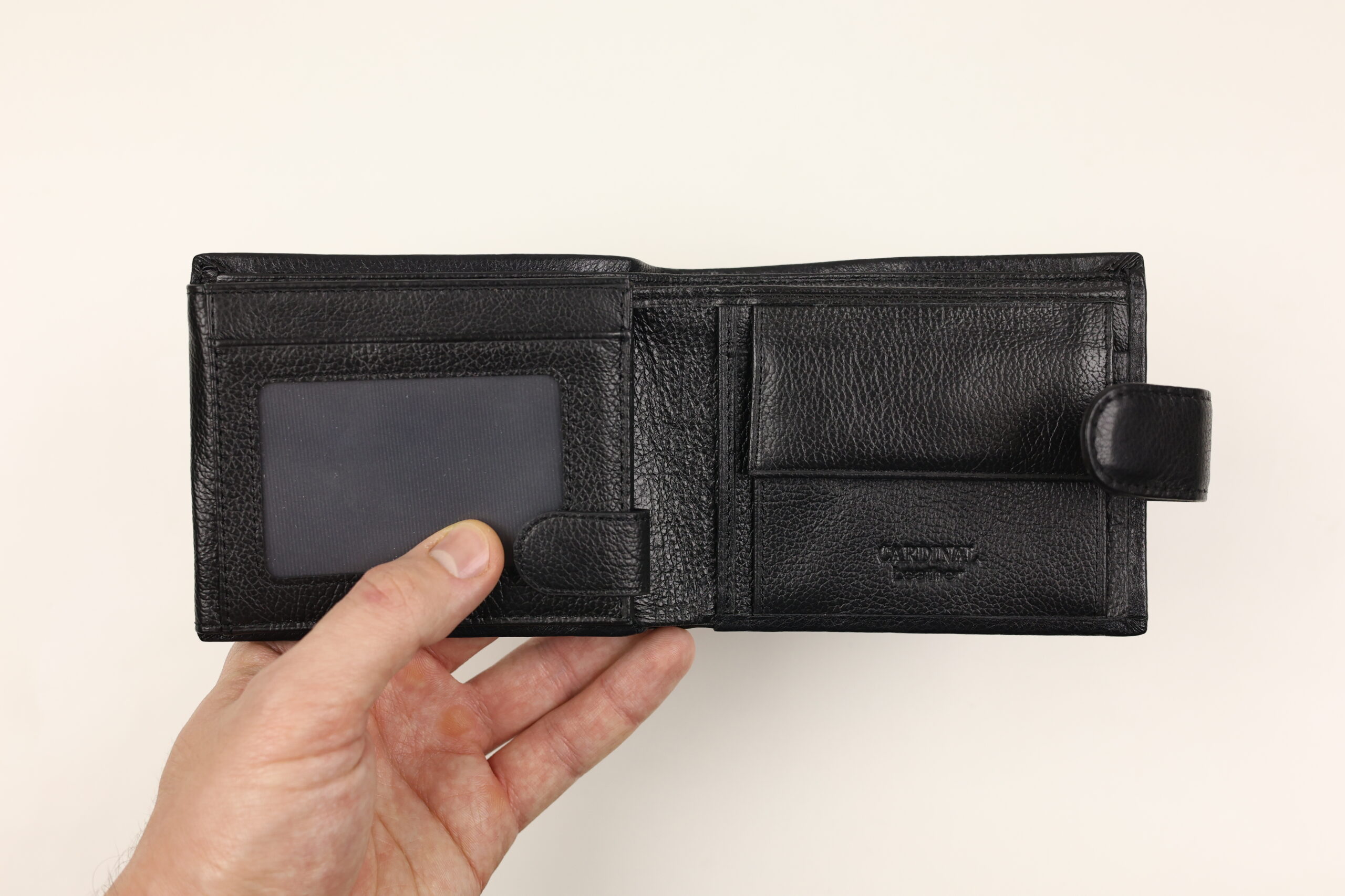 • Описова:Шкіряний гаманець Cardinal на кнопці з внутрішньою монетницею