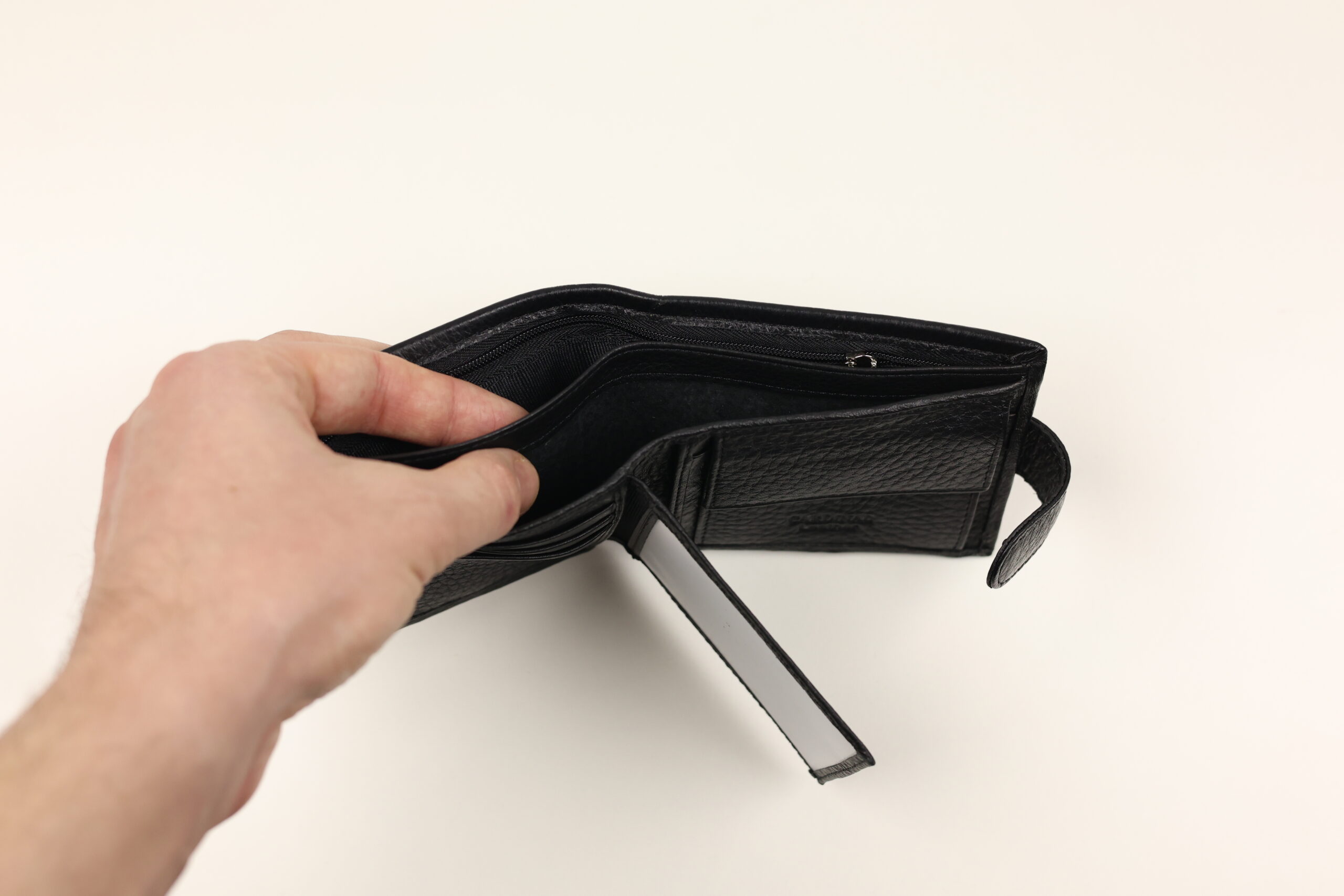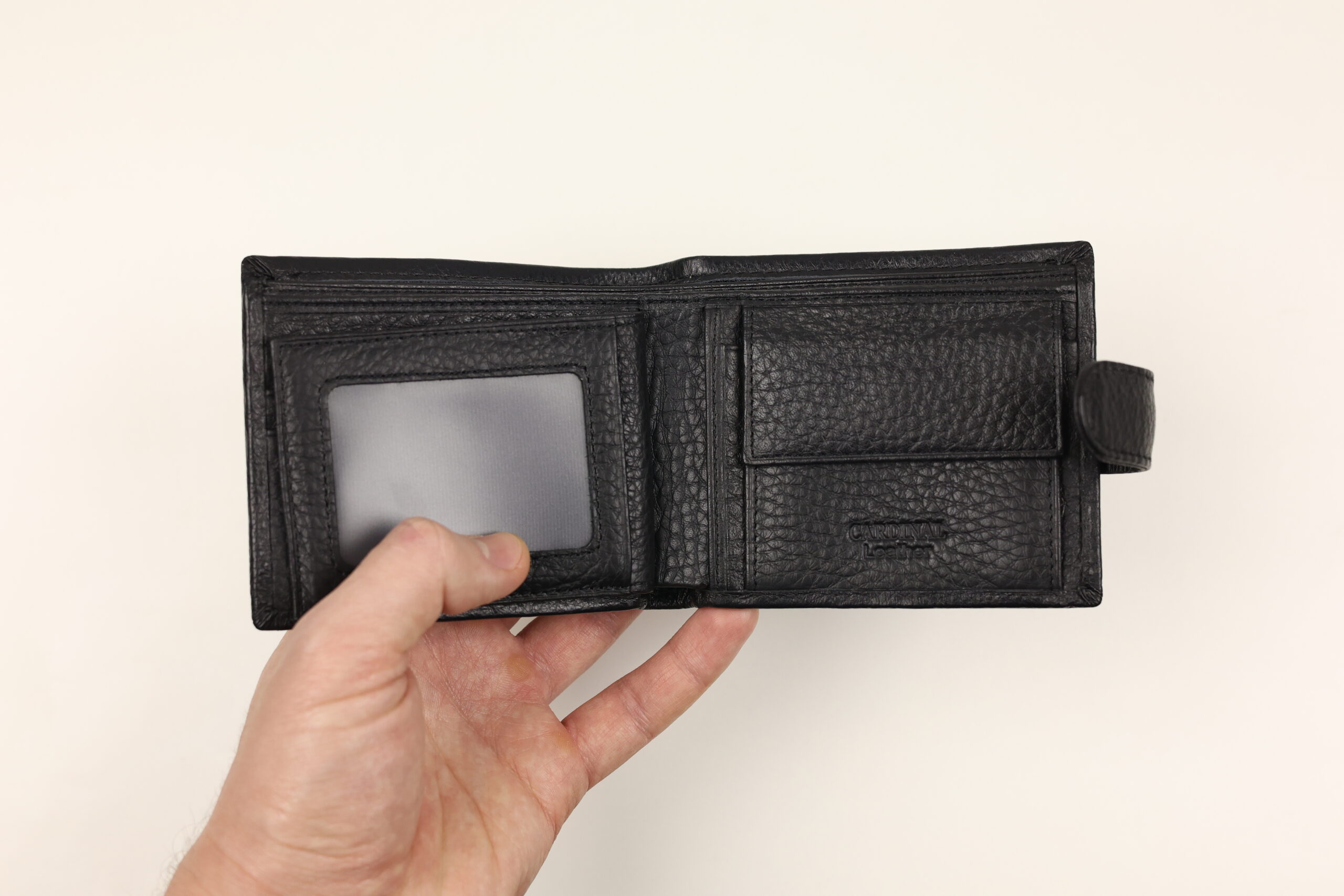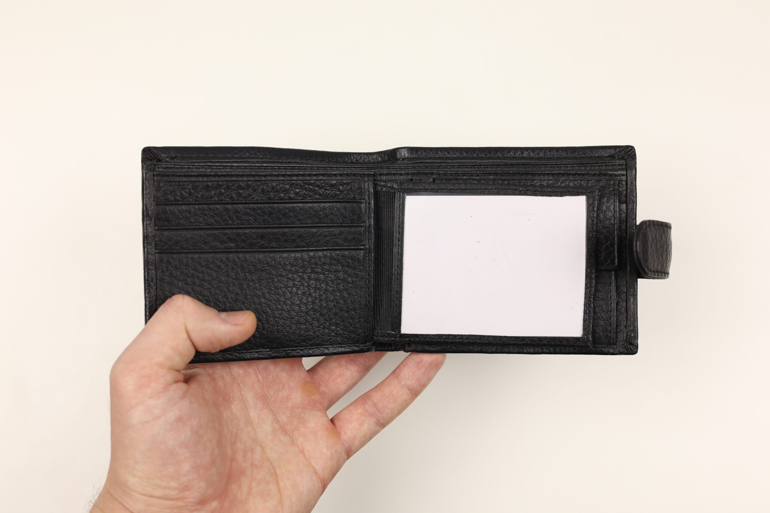 ✅ Повний захист: Зовнішній хлястик на кнопці надійно фіксує гаманець закритим.