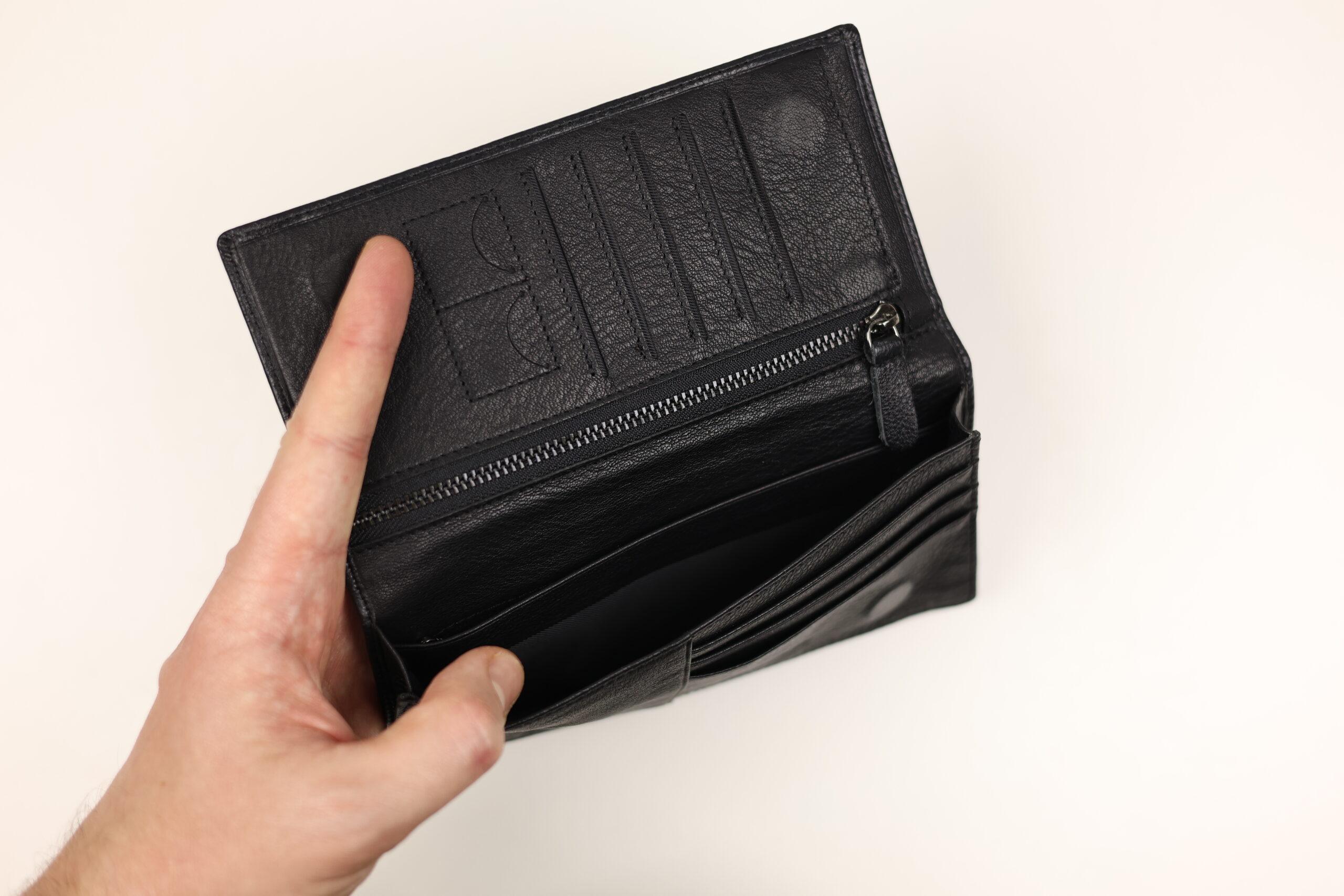 - ✅ Подвійний захист: Гаманець має дві кишені на блискавці: одну всередині (вертикальну) для цінних речей та одну зовні (ззаду) для швидкого доступу до монет чи дрібниць.